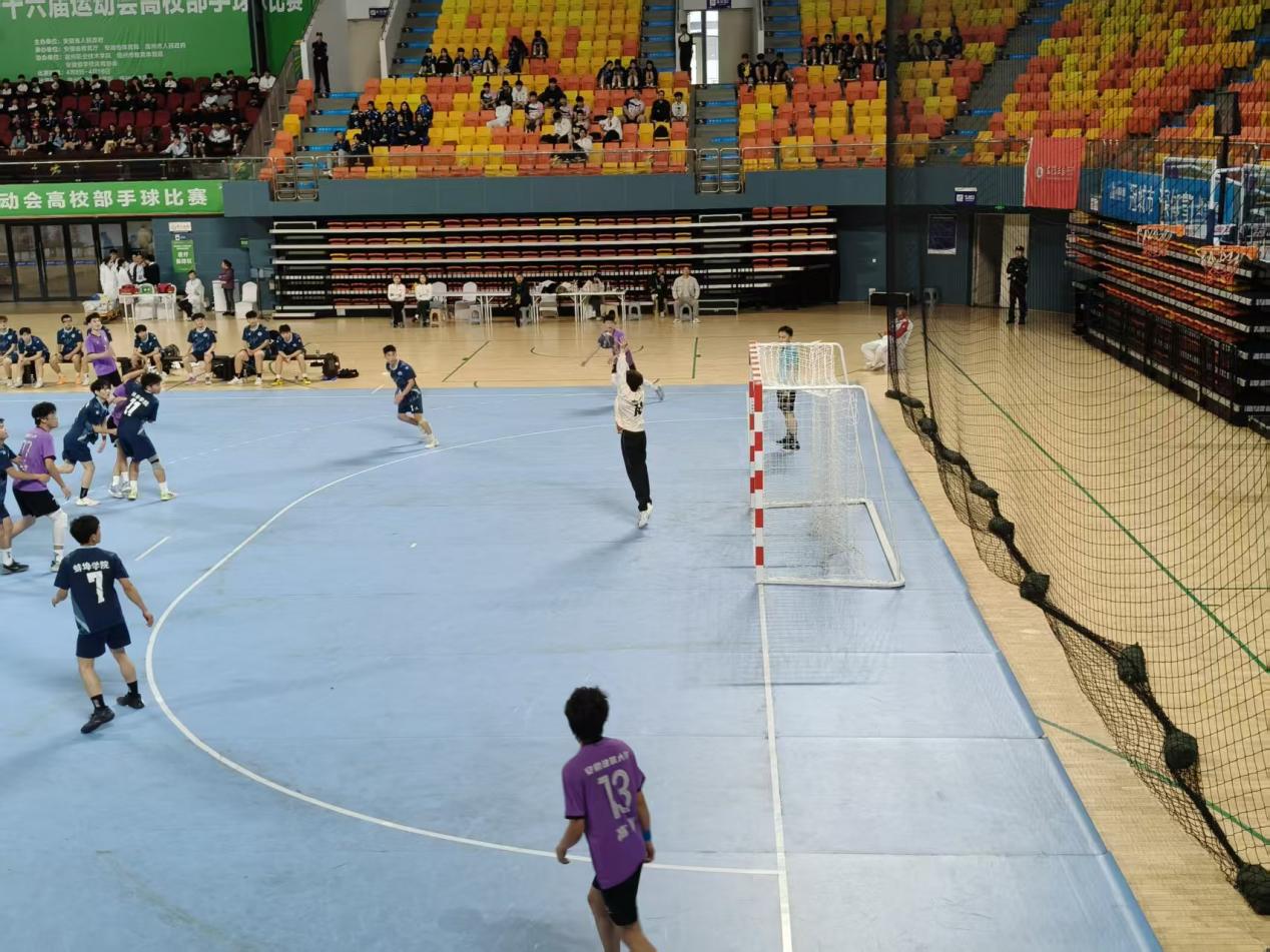 本届省运会高校部手球比赛汇聚省内多所高校劲旅,对抗强度高、竞争氛围浓。作为一支年轻队伍,蚌埠学院男子手球队赛前刻苦训练、打磨战术,赛场上团结协作、顽强拼搏,每球必争、每分必夺。面对实力强劲的对手,队员们沉着应战,攻防转换流畅,配合默契有序,在多场胶着对决中展现出过硬的竞技水平与良好的精神风貌。