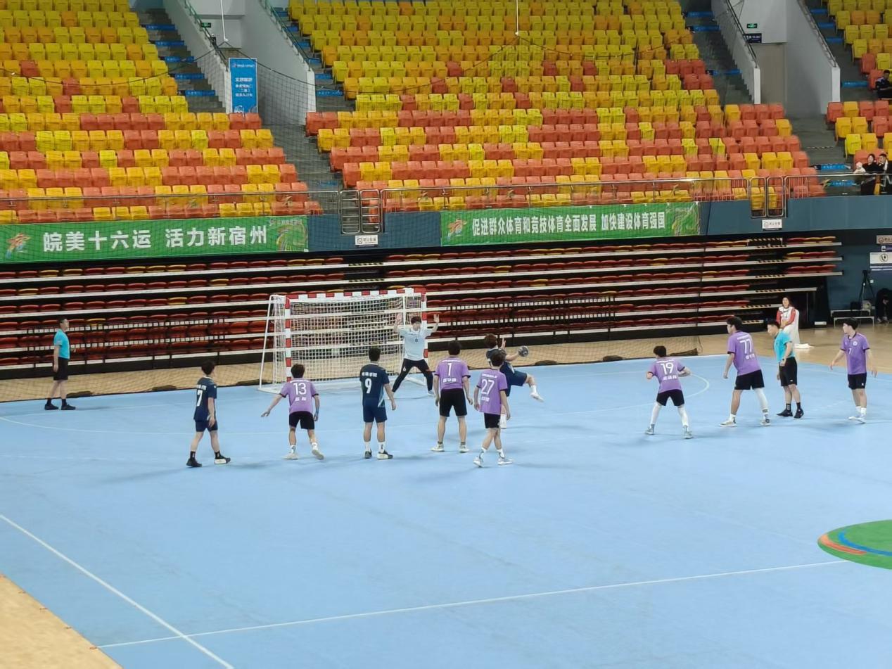 4月8日--16日为期8天的安徽省第十六届运动会高校部手球赛事在宿州体育馆圆满落幕。蚌埠学院男子手球队组队三年首次亮相省运会赛场,历经小组赛、交叉赛等多轮激烈角逐,敢打敢拼、越战越勇,最终荣获男子组第五名,实现历史性突破。